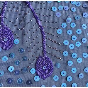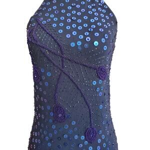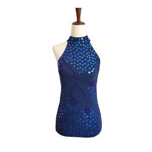 Beaded Sequin Blue High Neck Sleeveless Top - Small