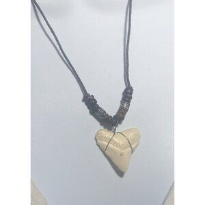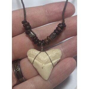 Fun retro style beaded shark tooth necklace. It's on an adjustable brown cord. It's got brown wooden accent beads, and silver tone accent beads. It has a genuine shark tooth that's gently and simply wire wrapped. Fun retro beach vibes!