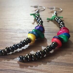 Beaded Shell Dangle Beach Earrings, Handmade Ladies Earrings