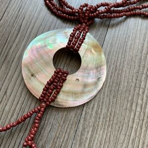Burgundy Beading with Shell Feature. Button Clasp. Perfect Condition. Great for vacay!!