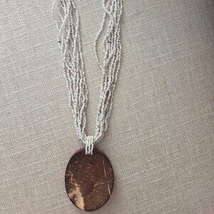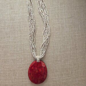 Red shell necklace with beaded chain. Gift from the Caribbean.