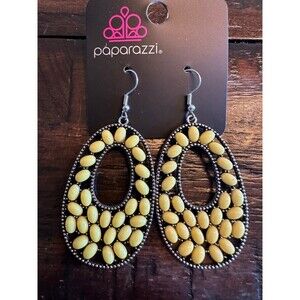 A collection of oval Illuminating beads collect inside a studded silver oval frame, creating a bright pop of color. Earring attaches to a standard fishhook fitting.