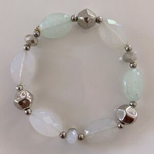 Beaded Silver & White Natural Stone Stretch Bracelet
