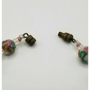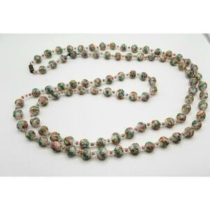 Beaded Single Strand Necklace Long Pink Green Multicolor With Flowers Women's