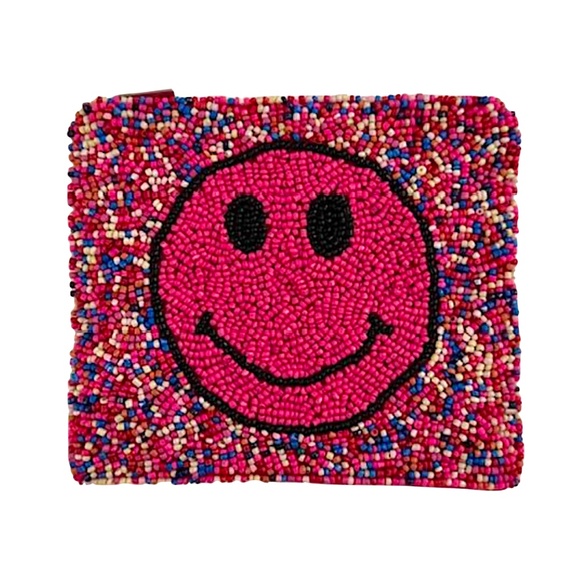 Beaded Sprinkle Smiley Face Coin Purse, Beaded Bag, Emoji