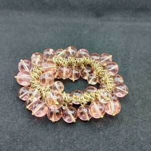 Brand: unknown. Likely it is J. Crew. It is super stretchy so wrist size doesn't matter. Light pink and yellow gold hardware.