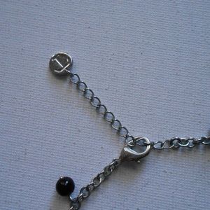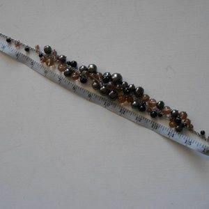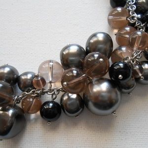 Groupings of Smoky Clear, Gray and Black beads on silver tone chain necklace