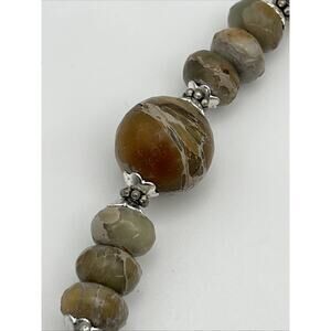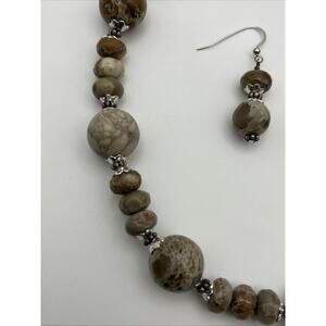 Beaded Stone Necklace & Earrings Set Natural Beige Sterling Silver Posts 18"