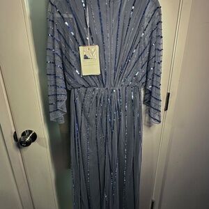 Mac Duggal Beaded Striping Kimono Sleeve V Neck Dress,New never worn with tags