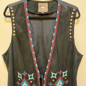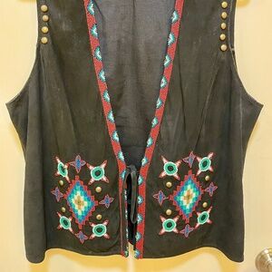 Beaded Suede Black Vest, Size 1X