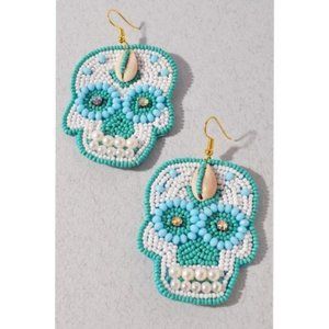 #BeadedEarrings #SugarSkull #BohoJewelry #FestivalStyle #StatementEarrings #ColorfulAccessories #CowrieShell #HandmadeStyle #EmmalunaBoutique #DayOfTheDead