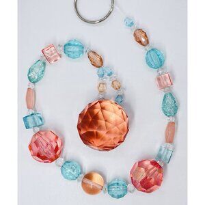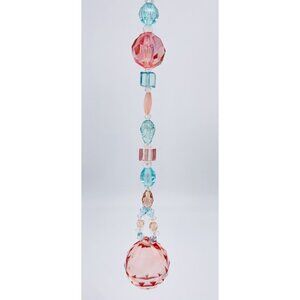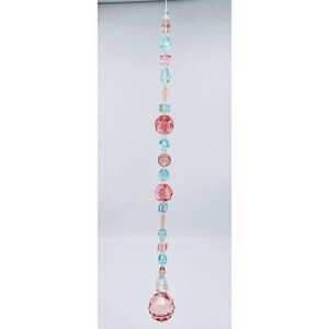 Beaded Suncatcher Blue Peach Crystal Prism Hanging Patio Decor Yard Art