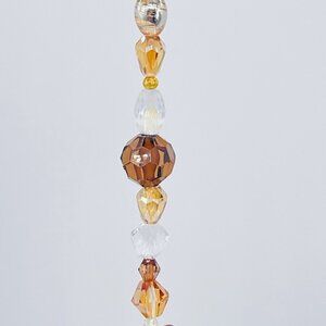 Picture this: a rainbow party made of glass and acrylic beads, hanging out and catching sun rays just for you! At 14.75 inches long this brown & clear hand strung suncatcher, featuring a clear glass ring, is not just a decor piece but a mood lifter. When the sunlight hits the beautiful beads you've got an instant disco of colors lighting up your room!