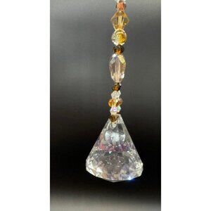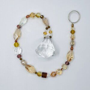 Beaded Suncatcher - Brown Gold - Clear Triangular Prism - Hanging Decor
