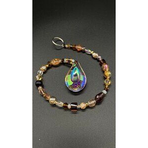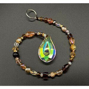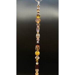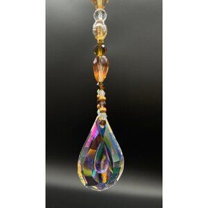 Beaded Suncatcher Champagne Gold Brown Clear Crystal Prism Hanging Patio Decor