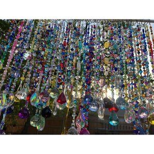 This one of a kind, handmade suncatcher is full of joy & whimsy! At 15 inches long this suncatcher has a variety of multicolored glass & acrylic beads in a variety of shapes ending with a clear glass prism that will shower your space with light when the sun hits it! The beautiful design will bring that pop of color to just about anywhere from the patio to the bedroom! A small metal ring is attached to the top for easy mounting on a hook, nail or in a tree.
