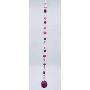 Beaded Suncatcher Clear & Maroon Crystal Prism Hanging Patio Decor Yard Art
