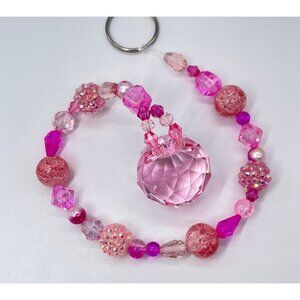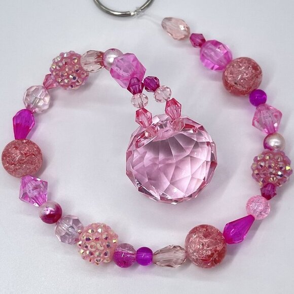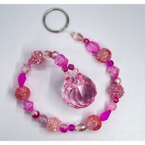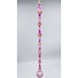 Beaded Suncatcher Pink Crystal Prism Hanging Patio Decor Yard Art Tree Jewelry