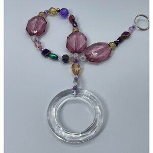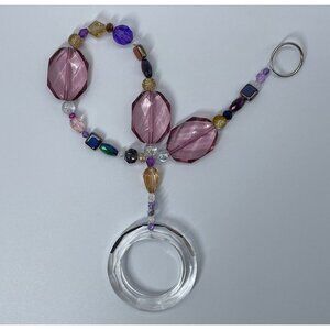 Beaded Suncatcher - Purple Gold - Clear Crystal Prism Ring - Hanging Decor