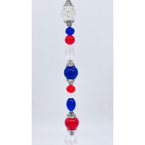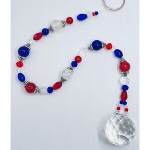 Beaded Suncatcher Red Blue Clear Crystal Prism Hanging Patio Decor Yard Art Tree