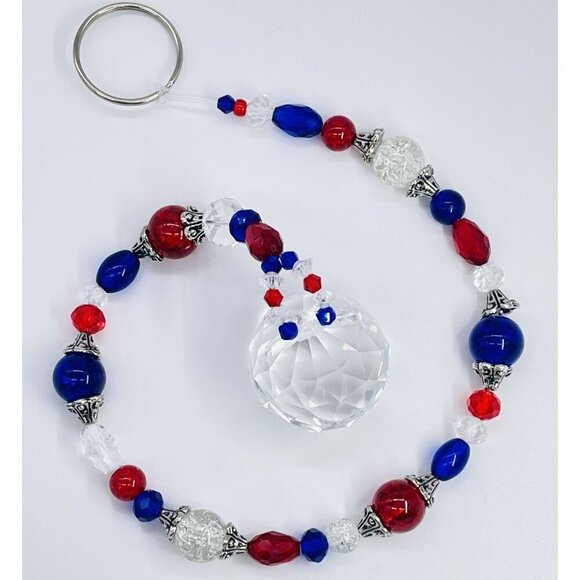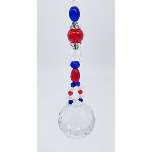Beaded Suncatcher Red Blue Clear Crystal Prism Hanging Patio Decor Yard Art Tree