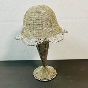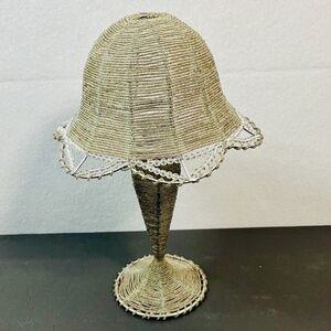 Beaded Tea Light Candle Holder Lamp and Shade Champagne Color Beads EUC