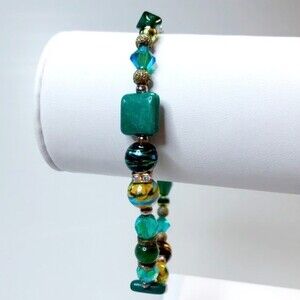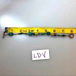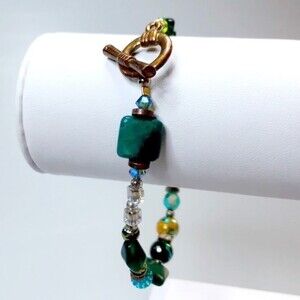 Beaded Toggle Bracelet Handmade Gold & Teal