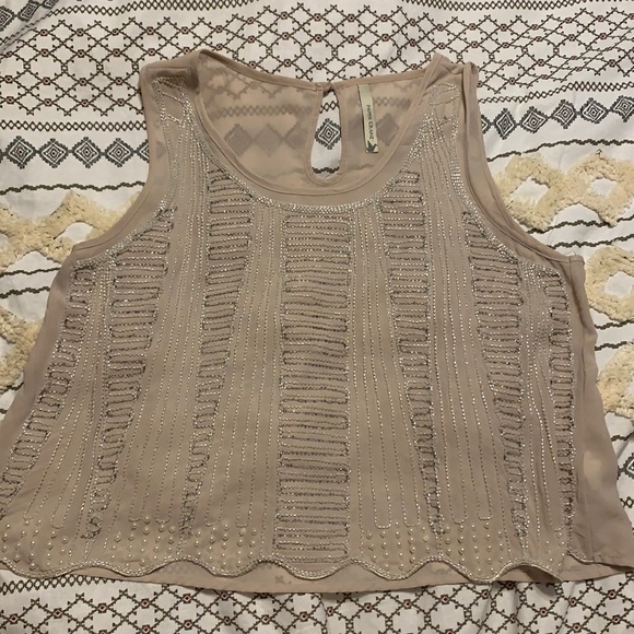 Beautiful beaded top. I think it’s a size medium or an oversized small. Worn maybe once, EUC