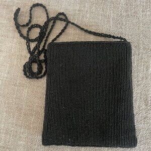 Beaded Tropical Crossbody Purse with Palm Tree Black 7" x 6" Flawed!