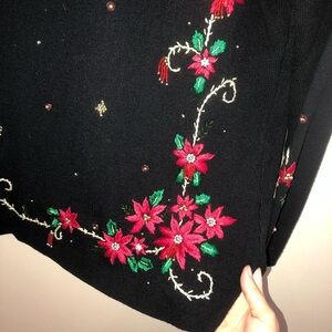 Beaded Vintage Embroidered Holiday Cowl Neck Sweater