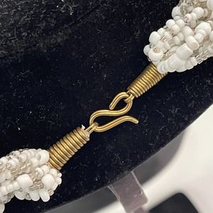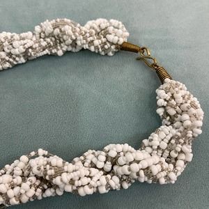 Beaded White Twisted Bead Chunk Bold Vintage Necklace