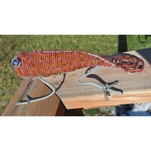 Beaded Wire Lizard w/ Marble Eyes 12.25" L x 6.5" W x 4.5" H African Folk Art