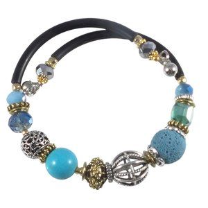 🛍️ Handmade gorgeous crystals in several shades of turquoise and teal with metal accents in both silver and gold plated metal. 🛍️The outside diameter is approximately 3" and the inside is about 2.25". 🛍️ Opens easily to wrap around most any sized wrist. 🛍️ Get all 5 of these bracelets and stack them. 🛍️ Brand new from manufacturer.
