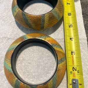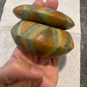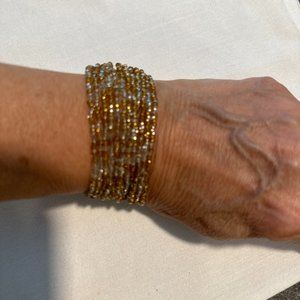Shades of gold beaded bracelet. Gold and white stretch bangle bracelet. Set of 2 multi color wood bangles. All very pretty, especially during summer months. All 3 items for $28 ! Final Sale.