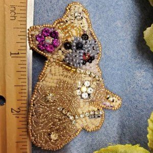 Beaded brooch French Bulldog puppy dog Made with Swarovski and Czech Crystals