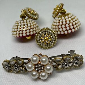 Set contains a ring, earrings, and hair clip!