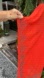 this is a beautiful bright orange color with silver beating around the neck and the sleeves as well. It comes with a matching tank top under if you choose to wear it as a top, but I think it would look pretty cute with your swimsuit as well. That beating is intricate and fairly heavy, so that peace hangs nice. In excellent condition condition.