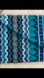 Blue, aqua, green bag with bronze beads. Optional crossbody shoulder strap, can also be worn as clutch. Magnetic snap closure with interior pocket. Cotton and wool blend.