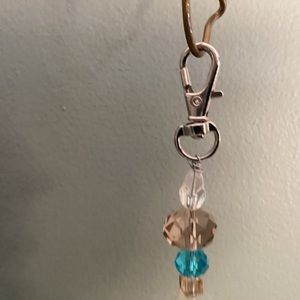 Beaded crystal sun catcher 8 inches long, lobster claw closure prisms galore