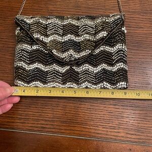 Beautiful black with gold and silver beaded evening handbag with inside pocket.