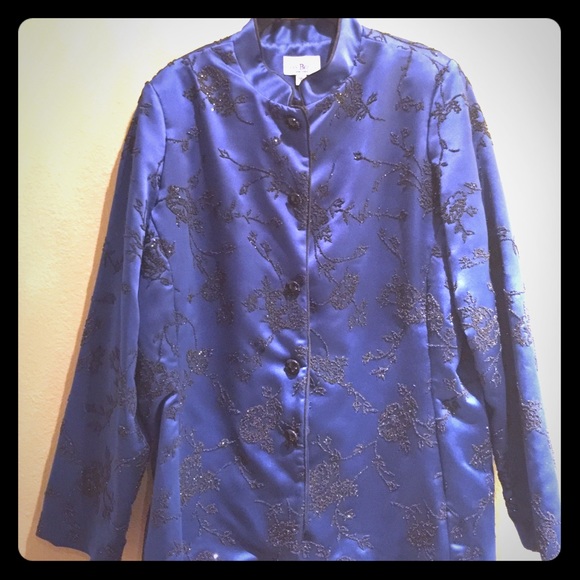 Vintage silk satin black beaded navy jacket with vintage buttons. Lovely for evening, even formal affair. Excellent condition.