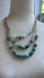 Beaded necklace green hues tones multi layer three strands beads vintage