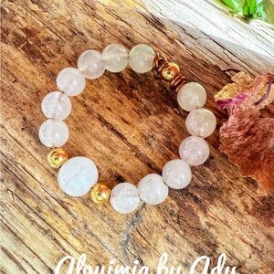 Beaded opal pink quartz ring
