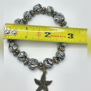 Never worn. Beautiful black/white/silver beaded stretch bracelet with silver stone starfish charm