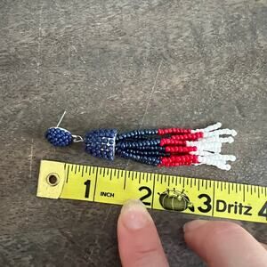 Beaded red white and blue boho tassel fringe dangle post earrings