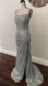 Beaded sparkly designer luxury silver prom dress or pageant evening gown