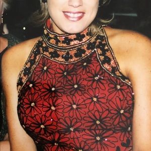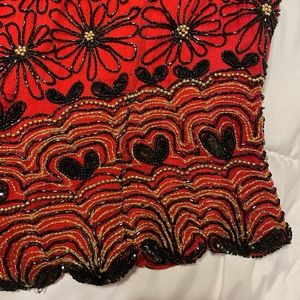 Gorgeous fully beaded top. Vibrant red with black and gold beads. Only worn once.