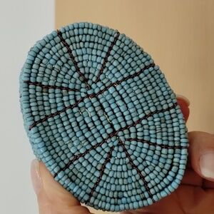 Beaded trinket box blue beads and wire with flower topper native American