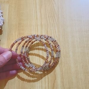 multi colored beaded wrap bracelet, peach, white and gold beads, very flexible and comfortable, lightweight and in perfect condition