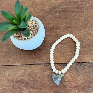 Beaded bracelet Beaded are wood Cute gray tassel Elastic